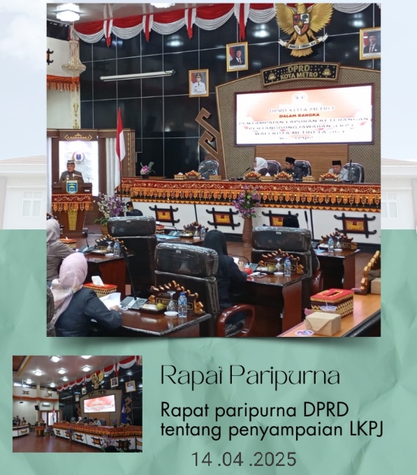 DIARY – Dewan Perwakilan Rakyat Daerah (DPRD) Kota Metro, membahas tentang Penyampaian Laporan Keterangan Pertanggung Jawaban (LKPJ) Wali kota Metro Tahun Anggaran 2024. Acara berlangsung di ruang sidang setempat, Senin (14/4/2025).