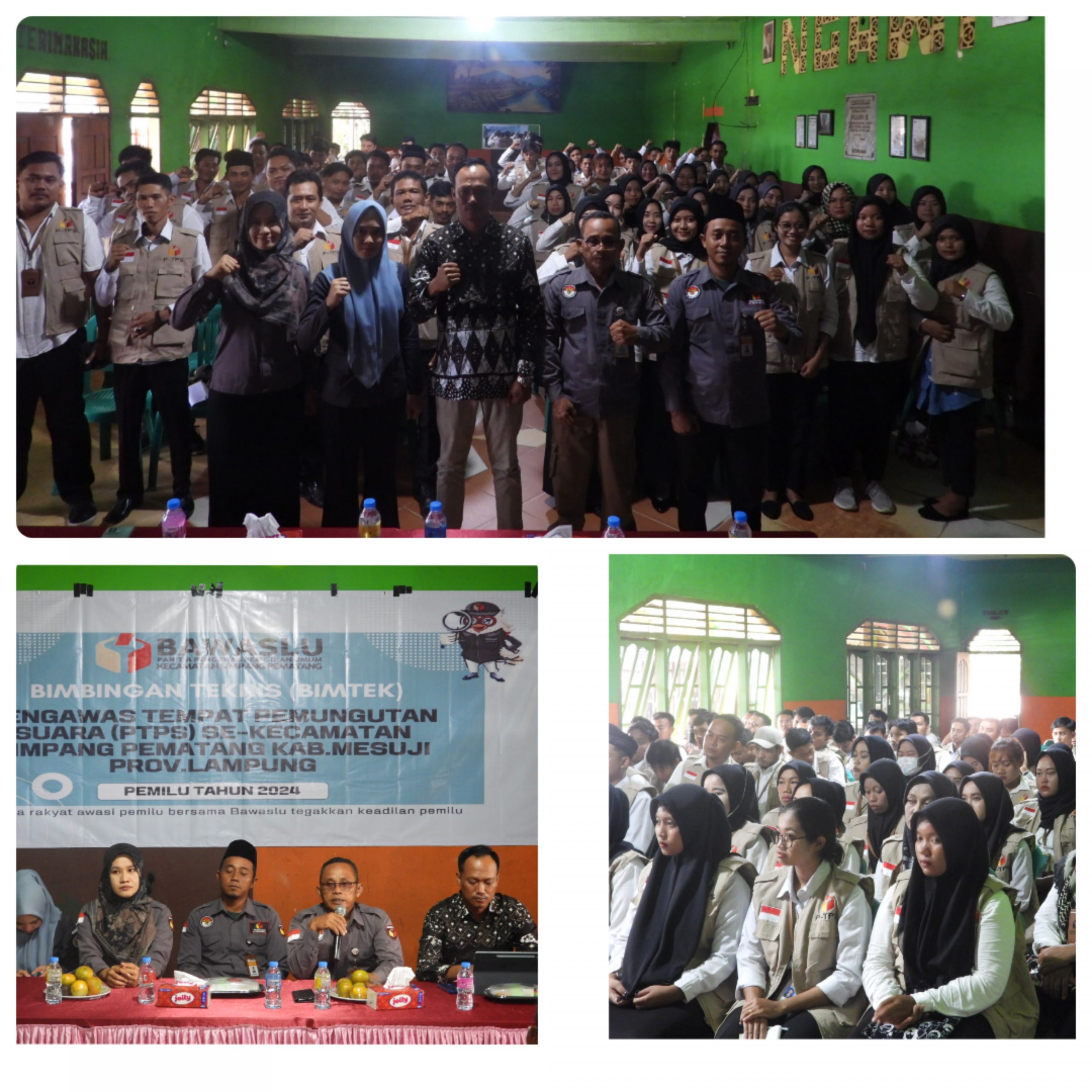 DIARY.CO.ID, Mesuji – Panitia Pengawas Pemilu (Panwaslu) Kecamatan Simpang Pematang gelar Bimbingan Teknis, Pengawasan Pemungutan dan perhitungan suara bagi PTPS Se-Kecamatan Simpang pematang yang di gelar di Rumah Makan Ngawi II jalan Lintas Timur Simpang Pematang Kab Mesuji Senin (05.02.2024.)