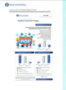 Lampung Keyakinan masyarakat Lampung terhadap kinerja perekonomian Lampung secara umum pada periode Mei 2025 terpantau terjaga. Hal ini terindikasikan dari hasil Survei Konsumen Bank Indonesia Perwakilan Provinsi Lampung yang menunjukkan bahwa Indeks Keyakinan Konsumen (IKK) sebesar 107,83, berada pada level optimis (>100) walaupun melandai jika dibandingkan dengan bulan sebelumnya dengan IKK sebesar 111,83.
