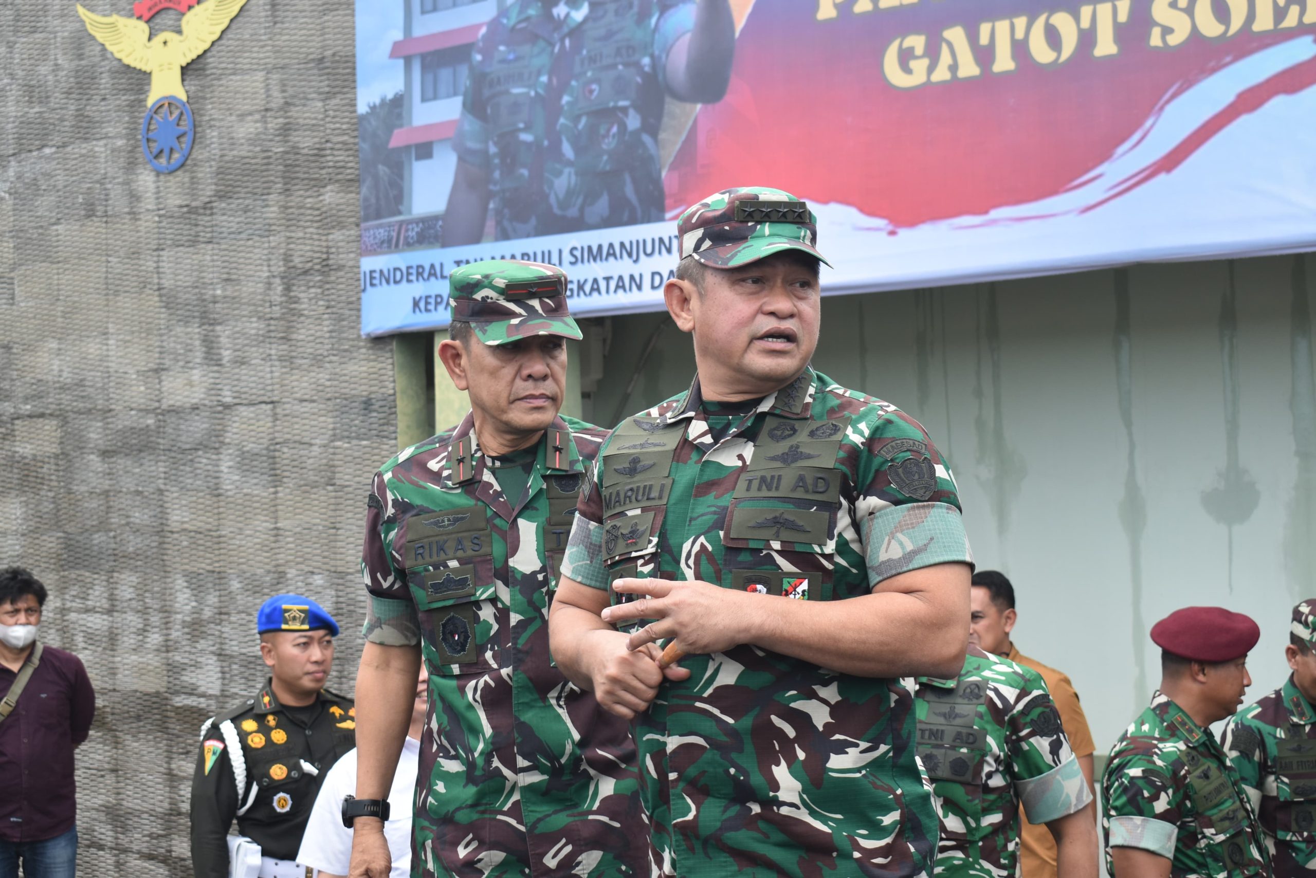 Kedatangan Kepala Staf Angkatan Darat Jenderal TNI Maruli Simanjuntak, M.Sc, beserta rombongan ke Provinsi Lampung menggunakan pesawat milik TNI-AU, di bandara Gatot Subroto pukul 10.05 Wib.