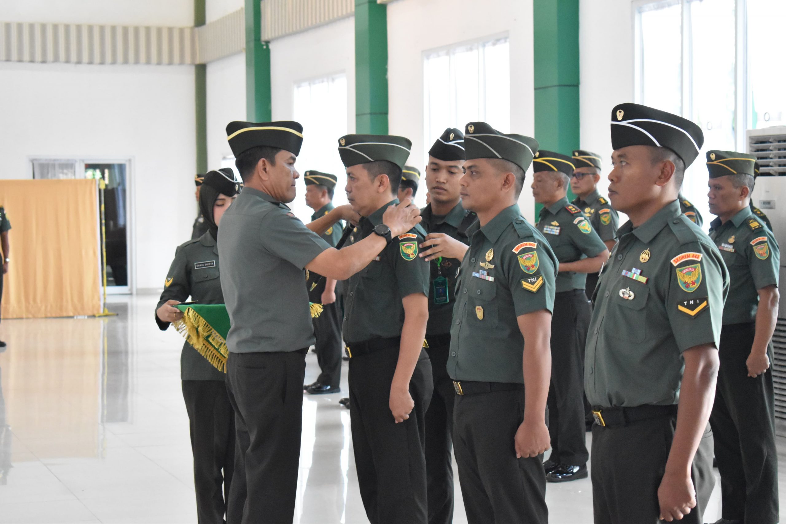 Danrem 043/Gatam Terima Laporan Korps Kenaikan Pangkat Perwira Dan Lantik Kenaikan Pangkat Bintara Dan Tamtama