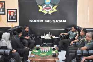 Lampung – Bertempat di ruang Lobby Utama Makorem 043/Gatam Jl. Teuku Umar Penengahan Bandar Lampung, Selasa (16/07/2024) Komandan Korem 043/Gatam Brigjen TNI Rikas Hidayatullah, S.E., M.M., menerima Audensi dan Silaturahmi Komisi Pemilihan Umum (KPU) Provinsi Lampung.