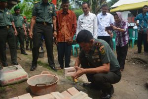 Selanjutnya Danrem 043/Gatam beserta rombongan melaksanakan peletakan batu pertama bedah Rumah Tidak Layak Huni (RTLH) milik Bapak Supari yang berada di Dusun Simpur RT. 003 RW. 007 Desa Kedaton Kecamatan Kalianda Kabupaten Lampung Selatan.