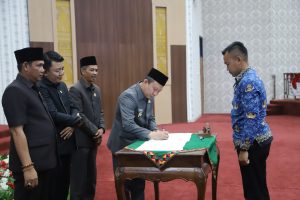 PRINGSEWU – Nota Kesepakatan Bersama Kebijakan Umum Anggaran Pendapatan dan Belanja Daerah serta Prioritas dan Plafon Anggaran Sementara (KUA-PPAS) Kabupaten Pringsewu 2025, ditandatangani bersama oleh Pj.Bupati dan pimpinan DPRD Pringsewu melalui Rapat Paripurna, Rabu (17/7/2024).