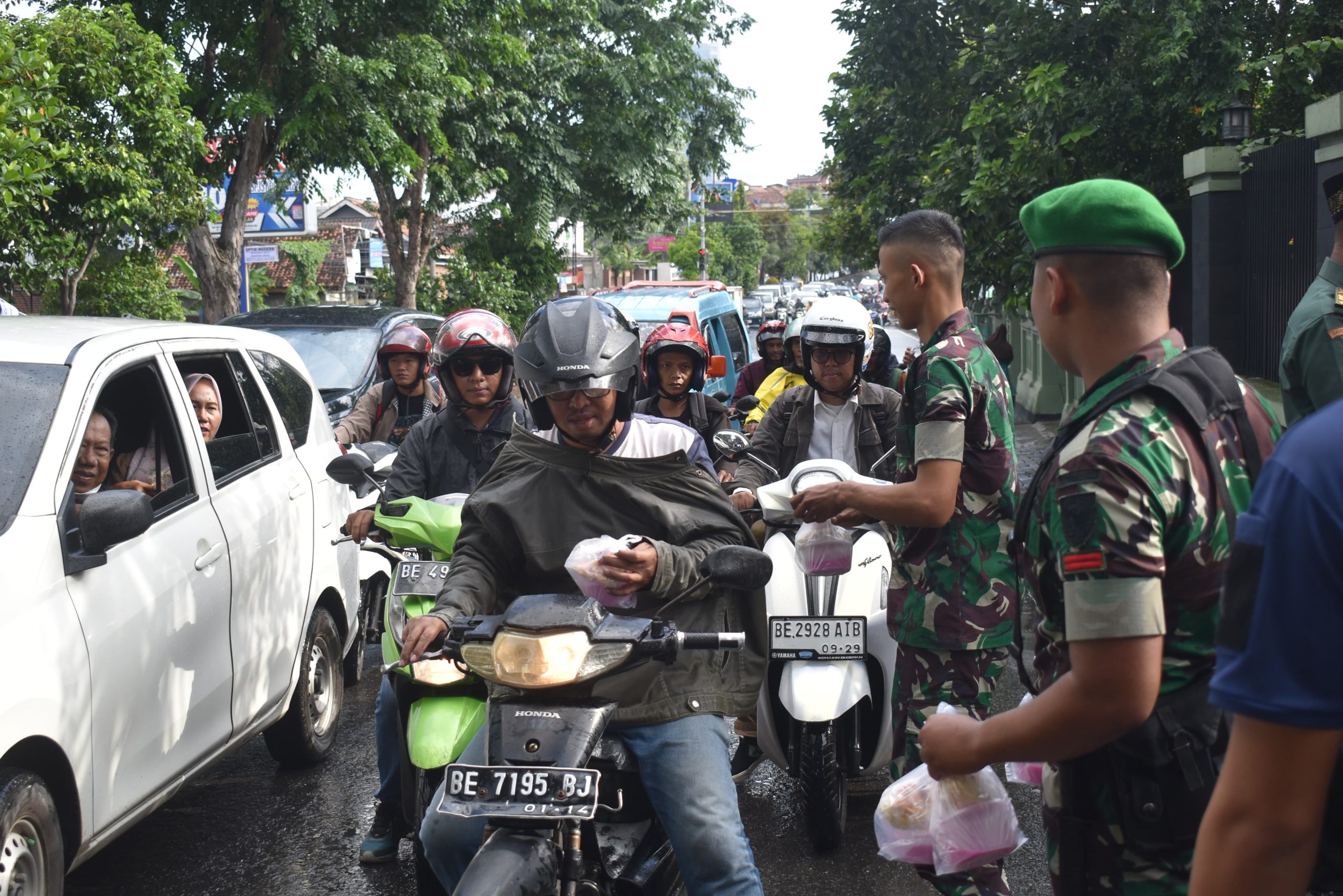 Aksi berbagi ini menjadi bukti nyata komitmen TNI dalam mendukung kesejahteraan masyarakat serta memperkuat kebersamaan di bulan Ramadhan, tampak personel Korem 043/Gatam turun langsung ke jalan membagikan takjil kepada para pengguna jalan yang melintas di jalan depan Makorem 043/Gatam, masyarakat yang menerima takjil pun menyambut dengan penuh rasa syukur dan terima kasih. (*/