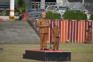 Bandar Lampung – Gubernur Lampung diwakili Staf Ahli Bidang Kemasyarakatan dan SDM, Lukman Pura memimpin Apel Mingguan di lingkungan Pemerintah Provinsi Lampung, bertempat di Lapangan Korpri Kantor Gubernur, Senin (20/10/2025).