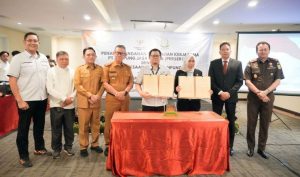 Bandar Lampung – Pj. Gubernur Lampung diwakili Sekertaris Daerah Provinsi Lampung, Fahrizal Darminto menghadiri Penandatanganan Perjanjian Kerjasama Antara PT Lampung Jasa Utama (Perseroda) dengan Kejaksaan Tinggi Lampung di Meeting Room Hotel Swiss Bell Bandar Lampung, Selasa (22/10/2024).