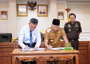 BANDARLAMPUNG – Gubernur Lampung, Rahmat Mirzani Djausal bersama Kepala Kejaksaan Tinggi Lampung Danang Surya Wibowo S.H., LLM menandatangani Kesepakatan Bersama antara Pemerintah Provinsi Lampung dan Kejaksaan Tinggi Lampung, di Ruang Rapat Utama, Kantor Gubernur Lampung, Selasa (24/6/2025).