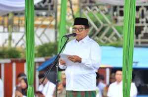 Menteri Agama Republik Indonesia Prof. Dr. KH. Nasarudin Umar, MA dalam sambutan tertulis yang dibacakan oleh Pj. Gubernur menyampaikan bahwa Hari Santri yang di peringati setiap tanggal 22 Oktober adalah momentum bagi semua untuk mengenang dan meneladani para santri yang telah memperjuangkan dan mempertahankan kemerdekaan Indonesia. Sejarah telah mencatat bahwa kaum santri adalah salah satu kelompok yang paling aktif menggelorakan perlawanan terhadap para penjajah. Salah satu bukti perlawanan santri terhadap para penjajah adalah peristiwa “Resolusi Jihad” pada tanggal 22 Oktober tahun 1945 yang dimaklumatkan oleh Hadratus Syekh Kiai Haji Hasyim Asyari.