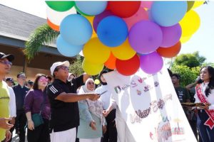 Lampung Selatan – Penjabat Gubernur Lampung, Samsudin melakukan pelepasan balon ke udara sebagai tanda secara resmi dibukanya Festival Nemui Nyimah Provinsi Lampung tahun 2024, di PKK Agropark, Sabah Balau, Minggu (27/10/2024).