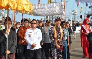 Bandar Lampung – Penjabat Gubernur Lampung, Samsudin, diwakili Staf Ahli Gubernur Bidang Pemerintahan, Hukum, dan Politik Provinsi Lampung, Ganjar Jationo menyambut kedatangan Tim Muhibah Budaya Jalur Rempah (MBJR) KRI Dewaruci dan Laskar Rempah di Provinsi Lampung Tahun 2024 bertempat di Pelabuhan Panjang, Kamis (11/07/2024).