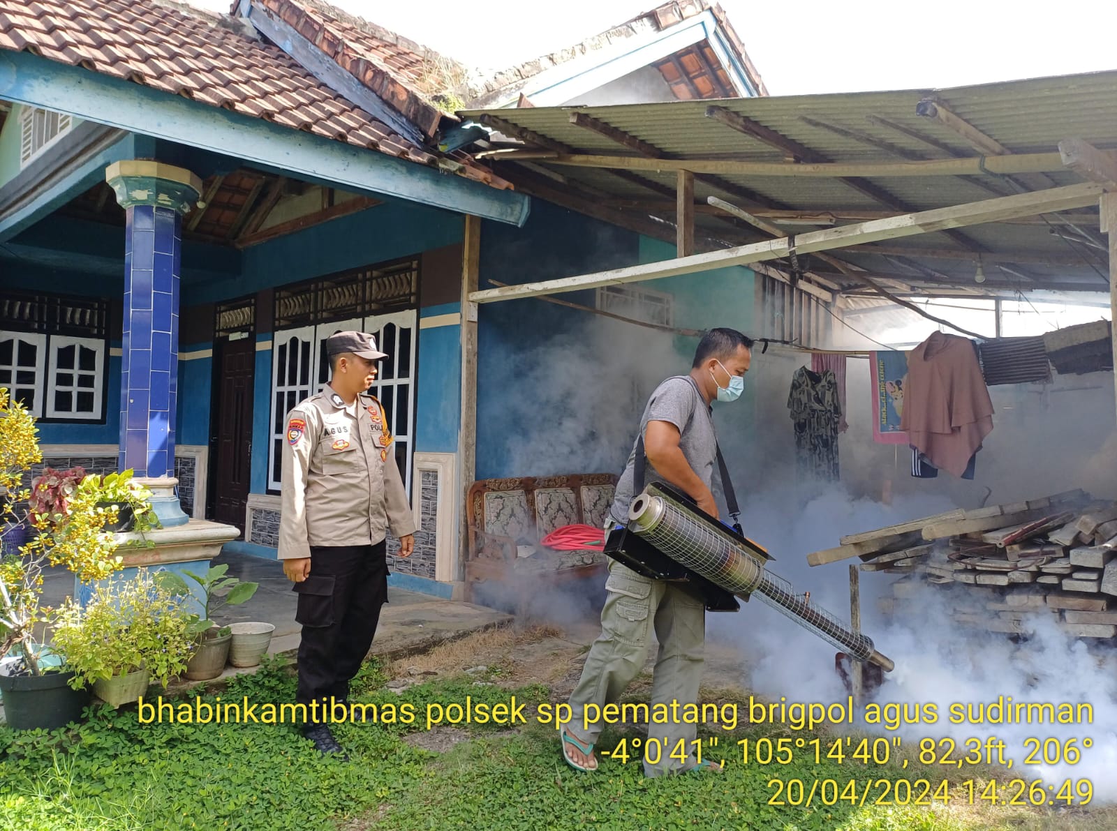 Bhabinkamtibmas Bersama Puskesmas Simpang Pematang Lakukan Penyemprotan Inteksida Cegah Perkembang Biakan Virus DBD