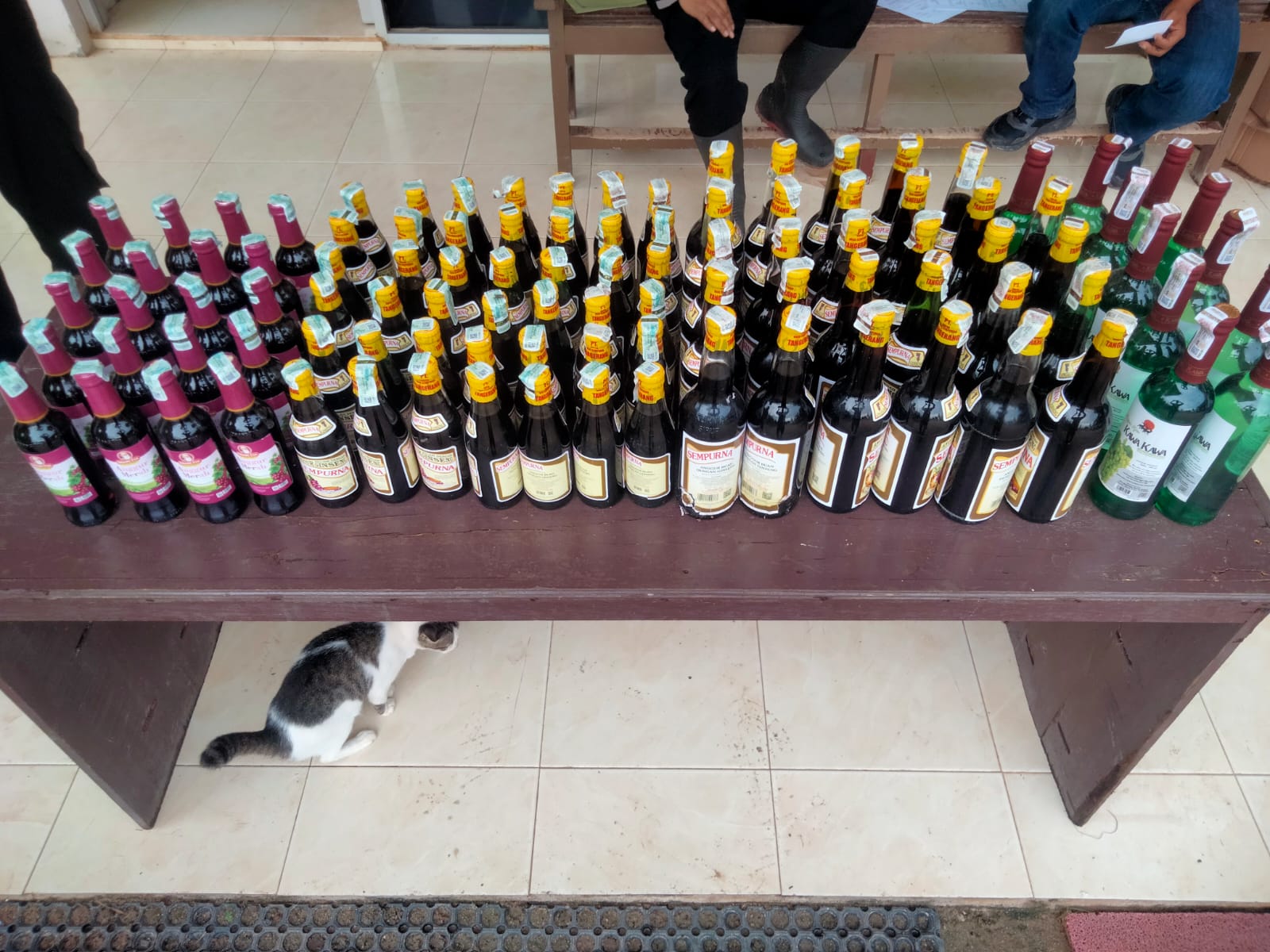 Lebih lanjut Terang Kapolsek, minuman keras yang di sita terdiri dari 29 (Dua Puluh Sembilan) botol besar merk Sempurna, 11( Sebelas) botol besar merk Kawa-Kawa, 20 (Dua Puluh) botol kecil Anggur Merah, dan 42 ( Empat Puluh Dua) Botol Kecil merek Sampurna.