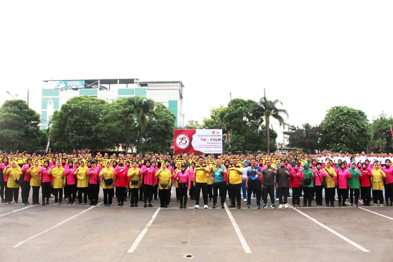 Kegiatan olahraga bersama ini sekaligus untuk memeriahkan HUT Ke-78 Bhayangkara. Sejumlah Komandan satuan TNI dan Polri di Bandar Lampung tampak hadir dalam olahraga bersama tersebut.