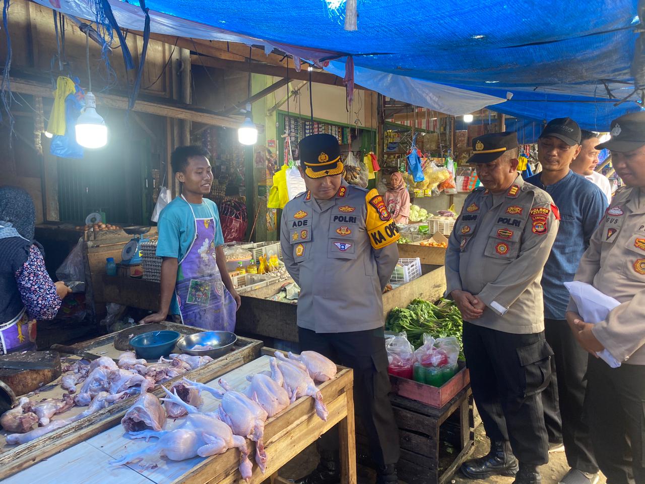 Kapolres Mesuji AKBP Ade Hermanto S.H, S.IK, CPHR mengungkapkan ketersediaan Bahan Pokok yang ada di Pasar Simpang Pematang dalam Kondisi mencukupi dan harga masih relatif normal, dapat di lihat dari masih terjangkau oleh daya beli Masyarakat.