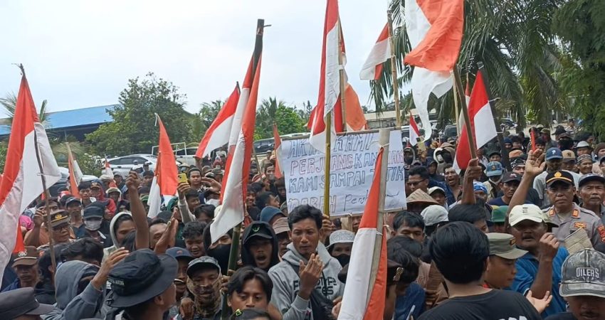 DIARY.CO.ID, Mesuji – Ratusan warga dari sembilan desa penyangga PT. PAL (Pematang Agri Lestari) menggelar aksi damai di depan kantor perusahaan, terkait sengketa lahan yang telah berlangsung selama beberapa tahun. Jajaran Polres Mesuji, Kodim 0406/Tulang bawang dan juga sat Pol PP Kab. Mesuji turut hadir untuk menjamin ketertiban dan keamanan. Selasa (06/01/26)