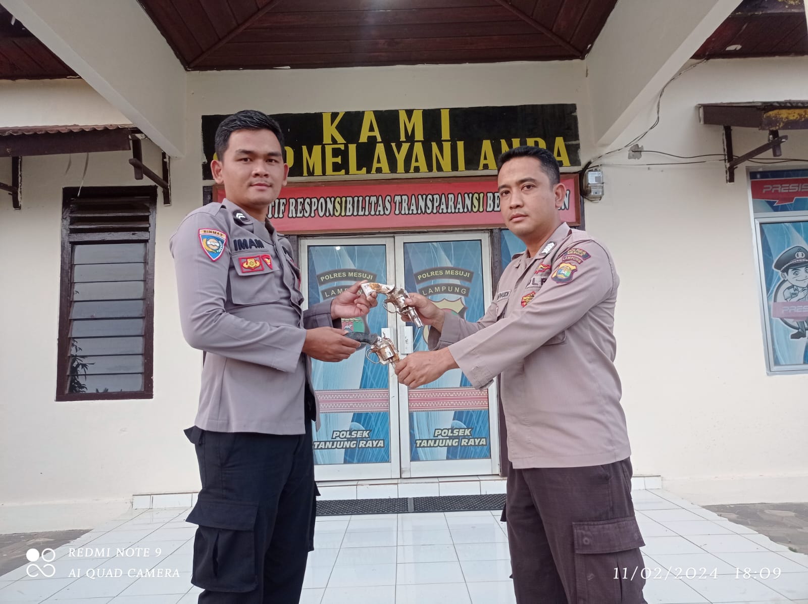 Polsek Tanjung Raya Melalui Bhabinkamtibmas Gedung Mulya Menerima Penyerahan 2 Pucuk Senpira