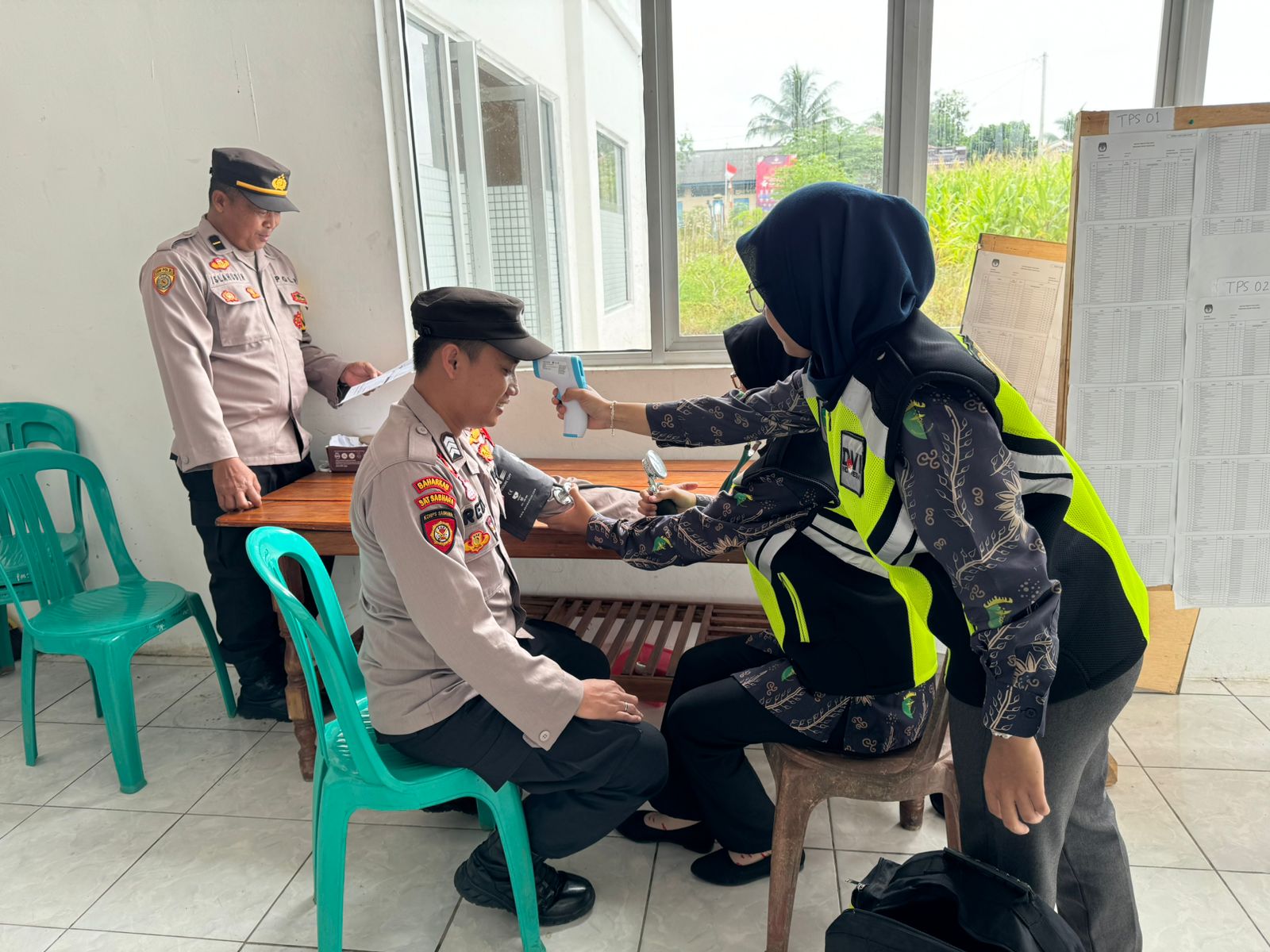 DIARY.CO.ID, Polres Mesuji Polda Lampung – Guna memastikan kesehatan petugas penyelenggara Pemilu 2024, baik Kelompok Penyelenggara Pemungutan Suara (KPPS) maupun petugas pengamanan (PAM) dari TNI, Polri dan Linmas yang kelelahan, Si Dokkes Polres Mesuji hadir untuk memberikan layanan Kesehatan, Kamis (15/02/24)