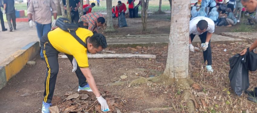 Tiga Pilar Bersatu, Polsek Mesuji Timur Gelar Gotong Royong Bersih-bersih Alun-Alun Marga Jadi